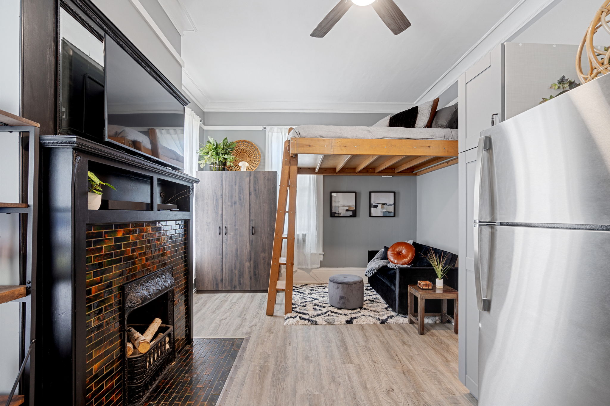 This fully updated, fully furnished studio apartment is cozy and stylish, featuring a unique hanging wood divider that separates the living space from the bedroom, giving the unit a private feel. The unit also includes a tiled tub/shower, plenty of storage, and a comfortable layout. Shared laundry with two coin-operated washers and dryers is available in the basement. Just a 10-minute walk to downtown Holland, a 5-minute walk to Centennial Park, and only a 10-minute drive to Holland State Park and Lake Michigan, this property is in a fantastic location!